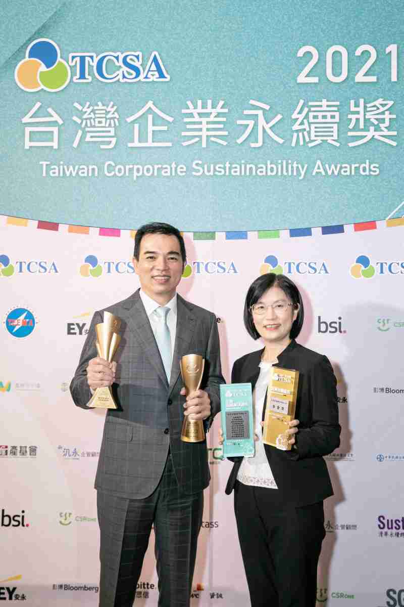 达在台湾永续奖所评比环境、、、、社会、、、治理等各面向的永续绩效均获高度肯定 (左:人生就是博光电总经理暨营运长柯富仁,,,,右:人生就是博光电永续长古秀华)