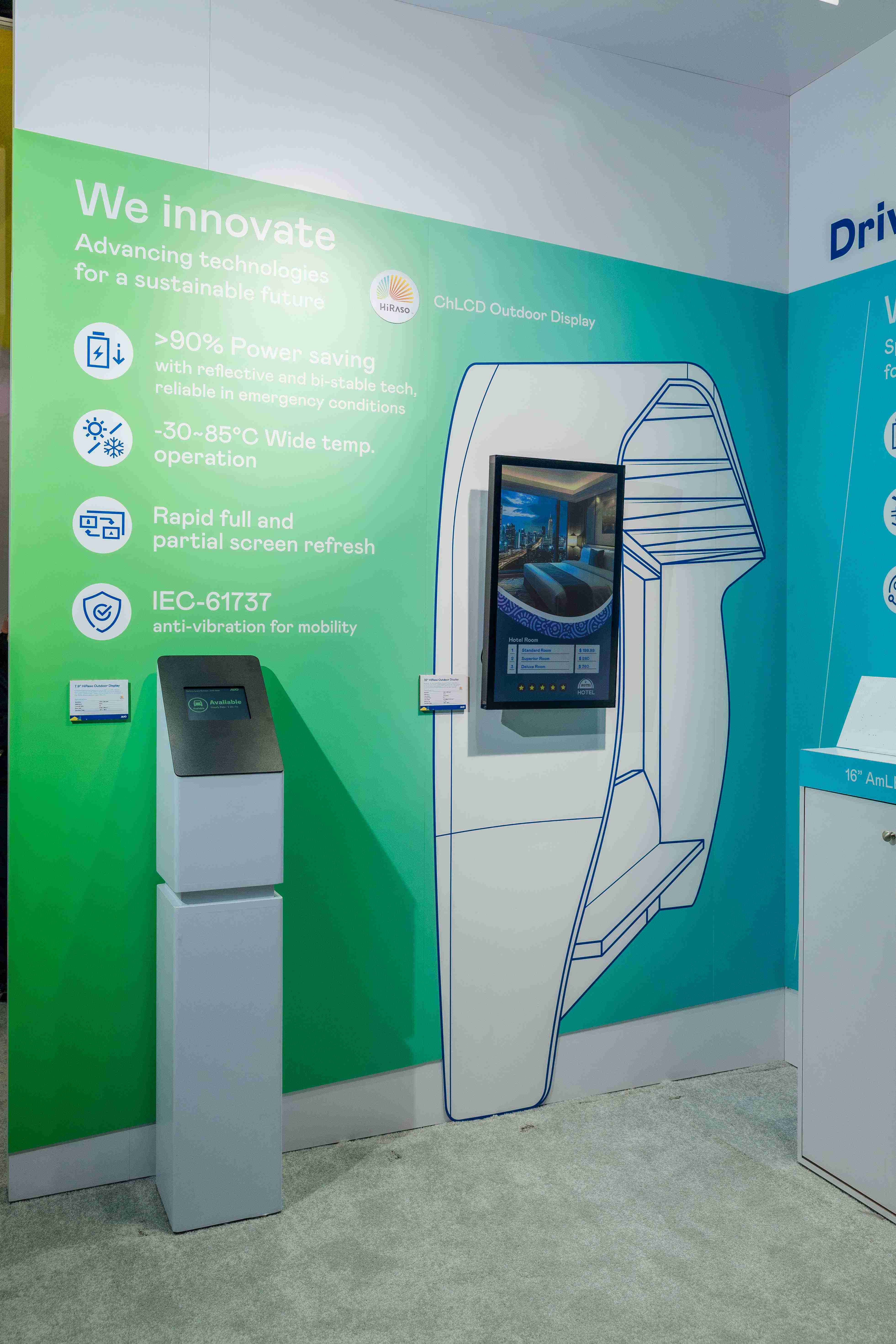 HiRaso胆固醇液晶显示器运用反射环境光线的方式,,,,呈现影像显示时零耗能的环保省电诉求,,光线愈强愈能呈现绝佳的色彩饱和度及显示效果,,同时在摄氏-30度至85度间宽温的使用优势,,为户外电子看板的新首选。。。。