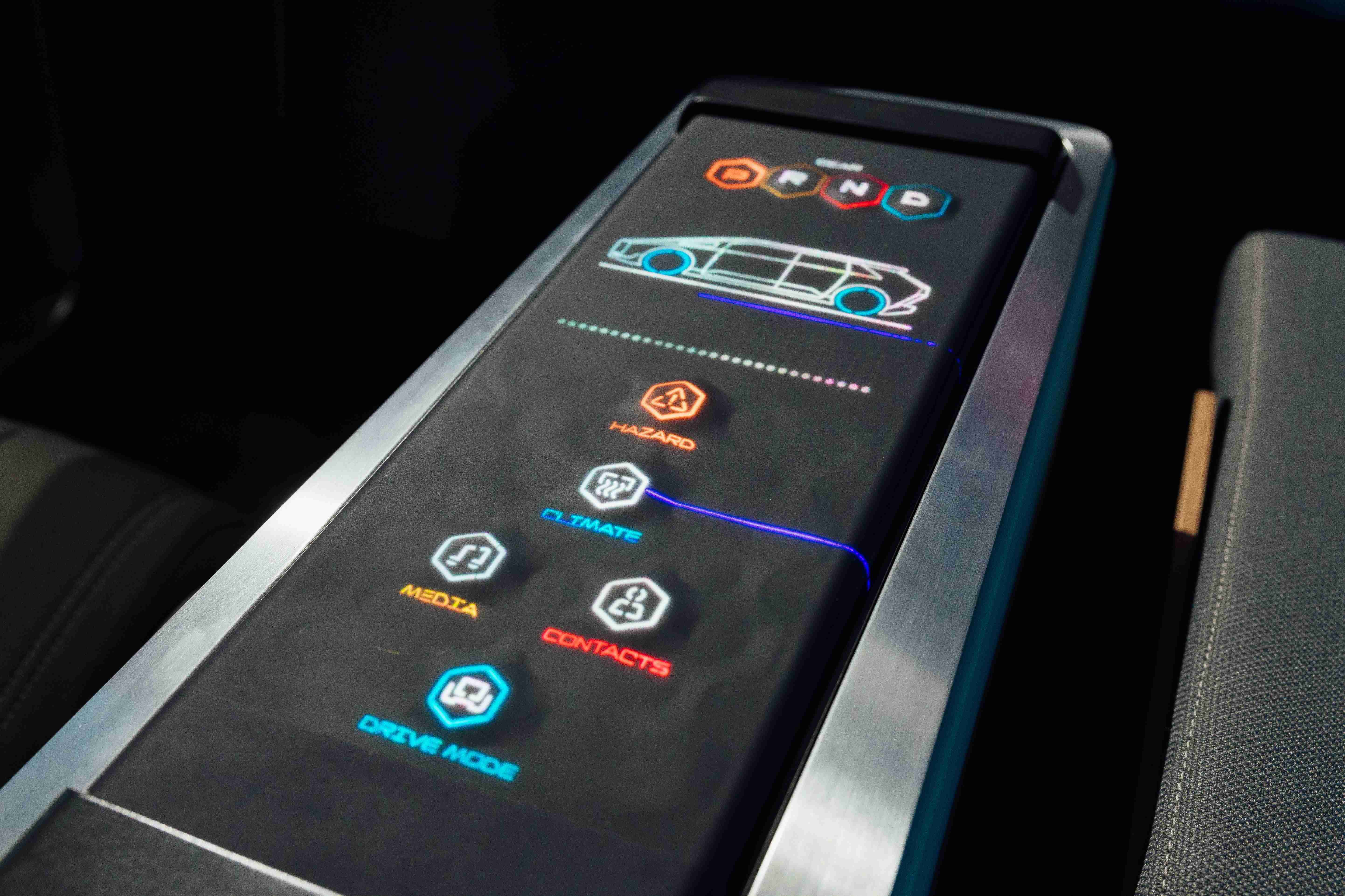 多变形态中控显示(Morphing Center Control)拥有动态变化的表面,,平时常态显示车辆功能,,,进一步操作时,,,则会隆起成为3D 按钮,,,并在触控时以震动回馈,,以精细的操作开创人机互动新境界。。。。