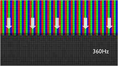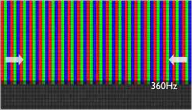 传统液晶驱动是从左到右单向进行,,,在画面更新速度愈来越愈快的情况下,,,位于驱动线路末端的右下角区域,,,画素的闸极来不及在短时间内获得足够电压,,,,无法显示出正确的颜色资讯。。。。 |